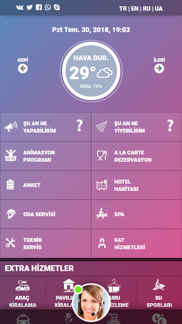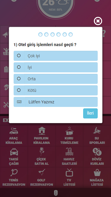 Misafirlerinize TV ekranlarında dünya saatleri, döviz kurları, 7 günlük hava durumunu sunarak (Ek modül eklenebilir) müşteri memnuniyetinizi üst seviyelere taşıyın.