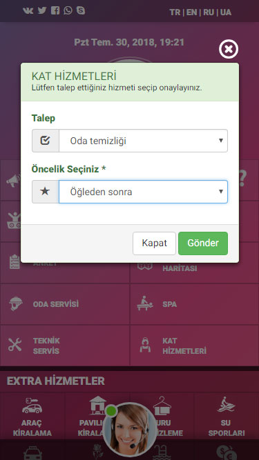 Misafirlerinizle tam entegre olun. Tüm taleplerinizi sms, whatsapp, email, yazılım paneli ile eş zamanlı olarak görebilirsiniz.